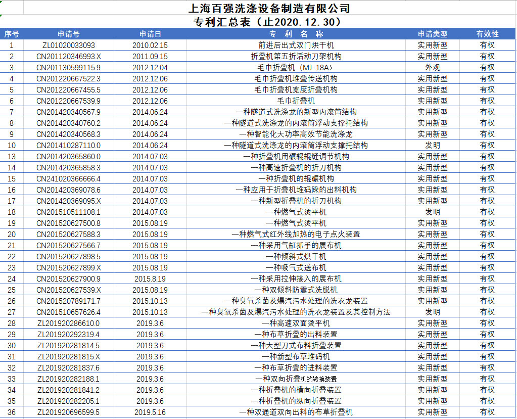 目前,我公司的產品,如隧道式洗衣機及相關機組,槽式熨平機、展布機、送布機、毛巾折疊機,布草折疊機,前進后出式烘干機及高脫水率洗脫機、燃氣式烘干機、燃氣式熨平機在市場上獲得了越來越多的客戶的認可。敬業、鉆研、真誠是我們百強公司全體員工的基本素質要求,努力使每一臺洗滌設備成為優質合格的產品,是百強企業人的目標。百強不斷進取,多方面學習,改進提升產品性能,結合多年的加工制造經驗,并采購符合國家或行業相關標準的配件,以確保機器結構性能穩定、經久耐用、造型美觀大氣。在發展的過程中,百強先后通過了ISO9001質量管理體系認證,ISO14001環境管理體系認證,ISO45001職業健康安全管理體系認證、產品質量CE認證,成為了為數不多的中國輕工協會洗滌裝備分會理事單位,中國商業聯合會理事單位和中國洗滌機械行業十強企業,上海市高新技術企業。以質取信、以信取人是百強人永遠不變的精神理念。