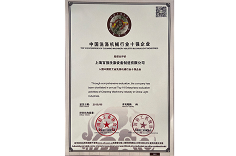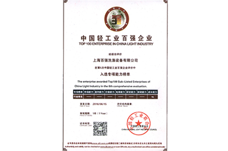 截至目前,百強已經先后推出水洗設備、烘干設備、熨平設備、高燙線設備和隧道式洗衣機組等五大系列100余個規格型號產品,連續5年被評選為中國輕工業百強企業和中國洗滌機械行業十強企業,獲取國家知識產權局授權專利39項。率先通過ISO9001國際質量管理體系認證、ISO14001國際環境管理體系認證、OHSAS18001國際職業健康安全管理體系認證以及產品質量CE和ETL認證。成為上海市工商局重合同守信用單位、中國輕工協會洗滌裝備分會理事單位、中國工商業聯合會理事單位和全國服裝洗滌機械標準化技術委員會副主任委員單位。