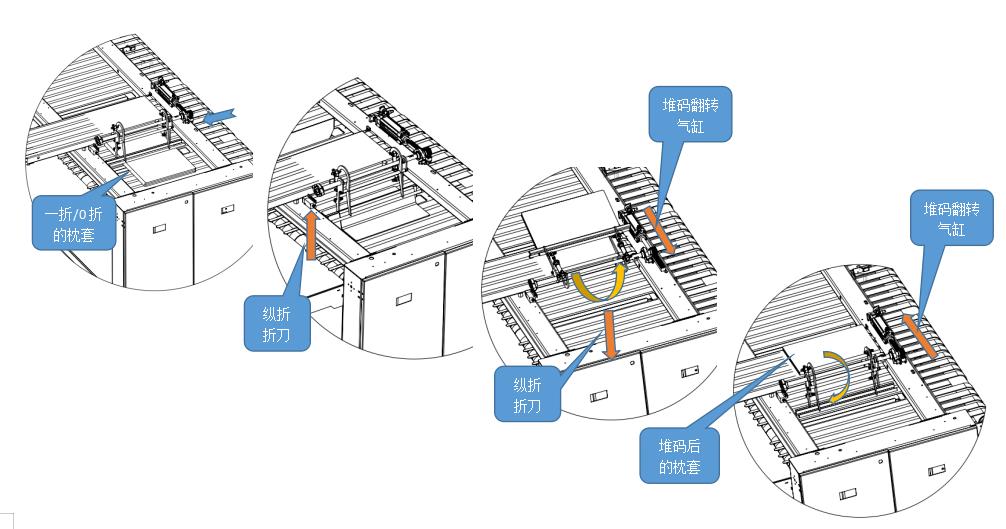 2,縱折同時完成對枕套的堆碼,整理打包的操作人員1人即可完成,可節(jié)省2-3個人的人工;
